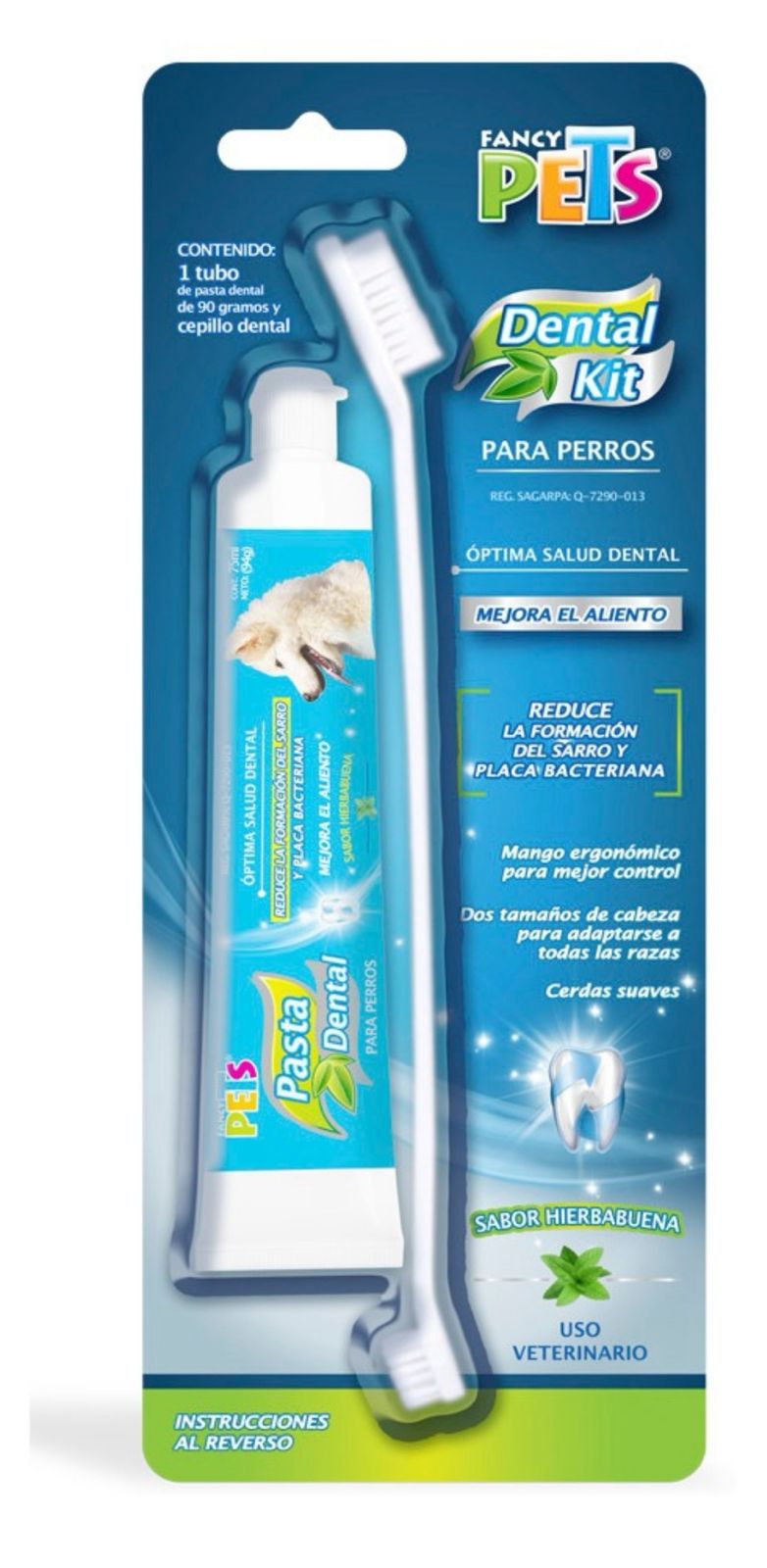 Cuida la salud dental de tu mascota como un profesional. Cepillo de doble cabezal, pasta sabor hierbabuena y cerdas suaves para una limpieza profunda y segura. ¡Aliento fresco y dientes sanos todos los días!